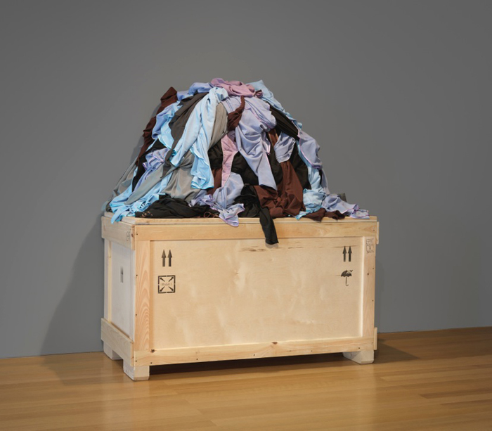 Moving from the marble alters and sacred architecture of Venice’s sixteenth-century Chiesa di San Gallo to the secular gallery context of FLAG, Cronin will present the same three fabric sculptures, here piled on top of their shipping crates to now address human trafficking as well as human rights issues. The installation of clothing, of what the missing bodies would have inhabited, provokes an emotional and visceral response to what is absent. Small photographs of each tragedy accompany the sculptures and provide very real context for the work. A new series of watercolor portraits place a human face on tragedy and amplify the “identifiable victim effect,” drawing our attention away from statistics to the magnitude of the individual loss and unrealized human potential. Cronin asks: “What is the role of contemporary art in our 24-hour news cycle society? What can an artist do if they are not a politician, a policy maker or the Bill & Melinda Gates Foundation? Hopefully the artist looks out, keenly observes the world, reflects, and responds in a way that shakes us out of our numbness. We cannot be silent.”