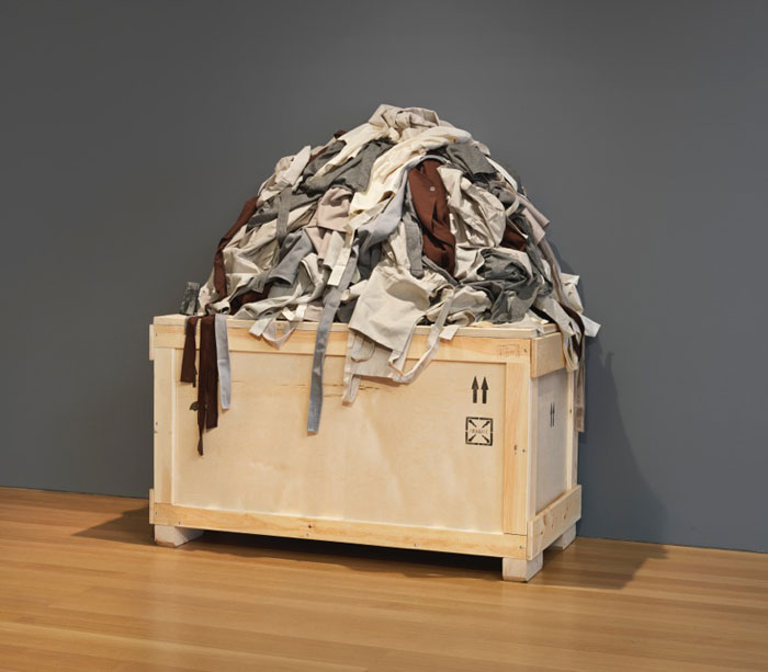 Moving from the marble alters and sacred architecture of Venice’s sixteenth-century Chiesa di San Gallo to the secular gallery context of FLAG, Cronin will present the same three fabric sculptures, here piled on top of their shipping crates to now address human trafficking as well as human rights issues. The installation of clothing, of what the missing bodies would have inhabited, provokes an emotional and visceral response to what is absent. Small photographs of each tragedy accompany the sculptures and provide very real context for the work. A new series of watercolor portraits place a human face on tragedy and amplify the “identifiable victim effect,” drawing our attention away from statistics to the magnitude of the individual loss and unrealized human potential. Cronin asks: “What is the role of contemporary art in our 24-hour news cycle society? What can an artist do if they are not a politician, a policy maker or the Bill & Melinda Gates Foundation? Hopefully the artist looks out, keenly observes the world, reflects, and responds in a way that shakes us out of our numbness. We cannot be silent.”