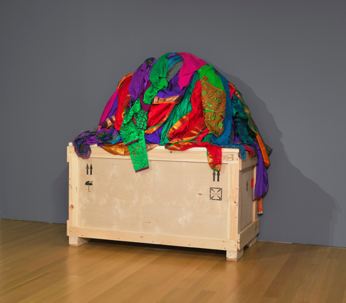 Shrine For Girls (Uttar Pradesh), saris, framed photograph and wood crate