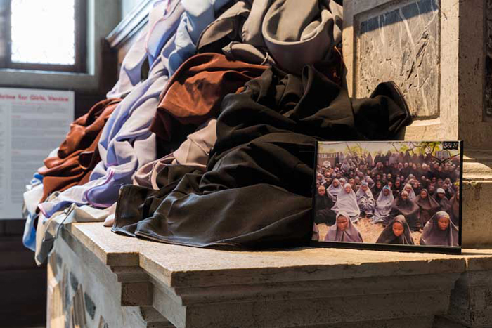 Shrine For Girls (Chibok), hijabs and photograph, 2015